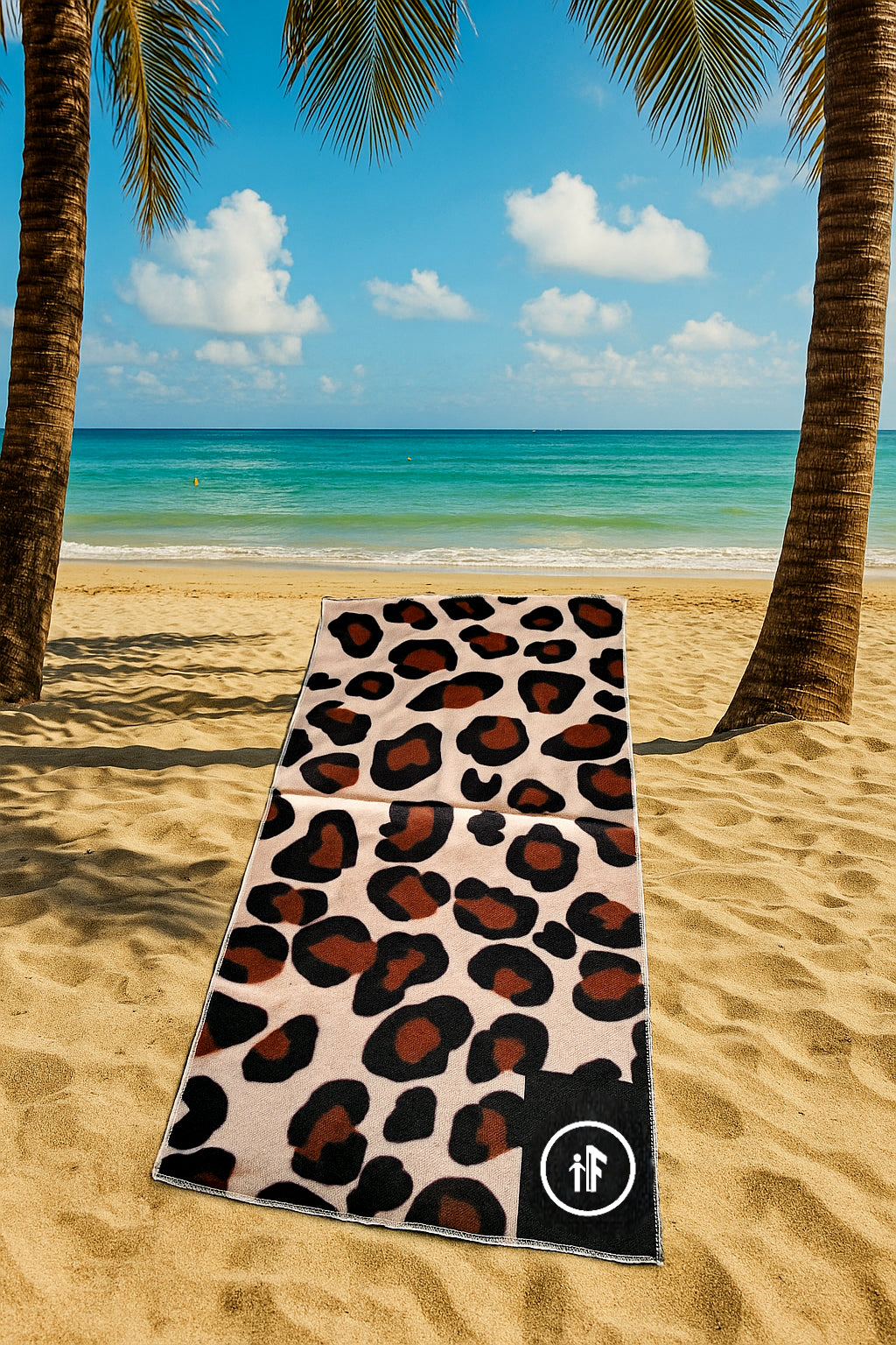 Coconut Ember is more than a towel — it’s a dream of warm sands and golden horizons woven into every fiber. Its creamy coconut base is kissed with lush chocolate-brown leopard markings, like footprints left by twilight along the shore. Each tone whispers of palm trees swaying in the late sun, waves dancing in rhythm with your heartbeat, and the soft hum of paradise that lingers long after your workout ends.