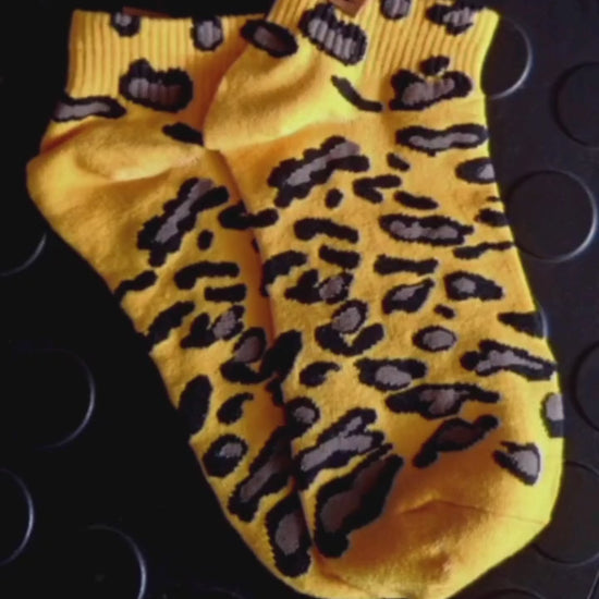 Add a wild twist to your step with these fierce low ankle socks! Bursting in bright banana yellow and splashed with bold leopard spots, Spotted Banana brings cheeky energy and fearless flair to your feet.