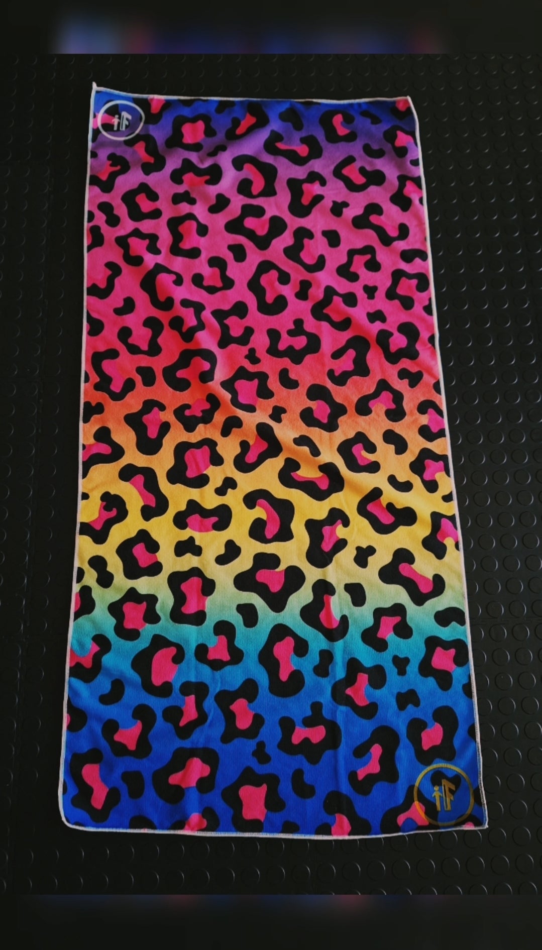 Dive into paradise with Electric Lagoon, where tropical serenity meets untamed energy. This towel bursts with bold neon hues — glowing coral, electric blue, and sun-kissed yellow — flowing together like a sunset melting into island waters. The striking leopard print brings a fierce edge, while the soft, absorbent fabric makes it perfect for beach days, poolside workouts, or post-training cool-downs.